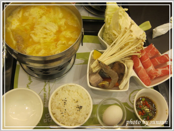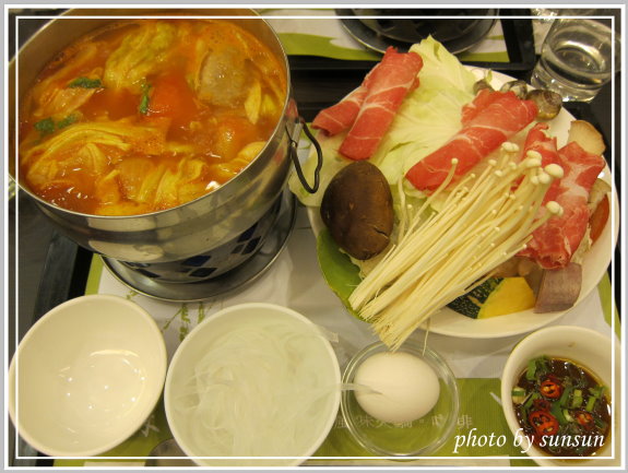我選的是豬肉義式番茄火鍋(270元),然後將白飯換成寬冬粉,附的沾醬就是一般的沙茶醬。