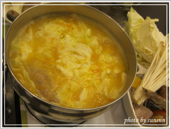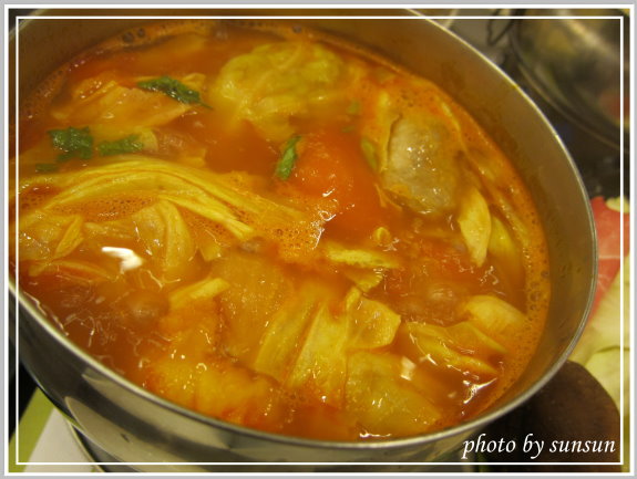鍋子內本來就放了高麗菜與一些火鍋料等食材,要吃不飽還真難呢。這家的番茄鍋湯頭喝起來真的有紅醬義大利麵的味道,喝得出來真的有將番茄的鮮甜熬進湯中,森品的番茄鍋是我吃過僅次於普羅旺斯的第二名,其餘三人試了湯頭也都覺得不錯。