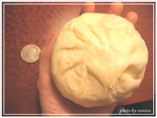 先咬一口外皮,沒有彈性,老媽覺得麵粉味過重,