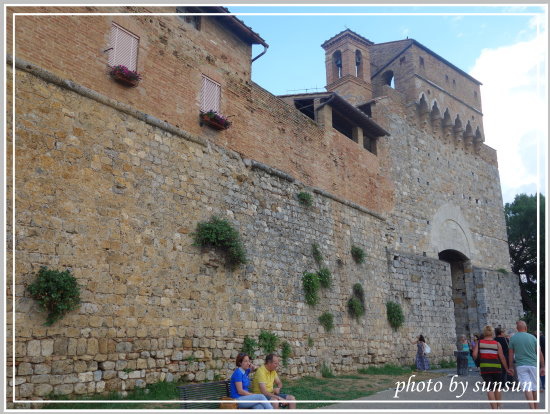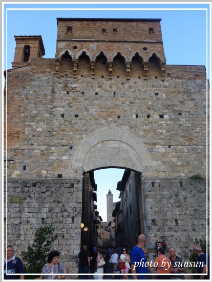 入城去囉!聖吉米納諾有著「美麗塔樓之城」美譽,巔峰時期共有76座高塔,現僅存14座,在中古世紀皆作為堡壘防禦功能。她曾是中古世紀欲前往羅馬朝聖人民的中途休息站,所以繁榮一時,不過因一場席捲托斯卡尼區的大瘟疫發生後而沒落,不過也因此得以保留原有的樣貌。