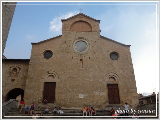 繼續往裡邊走,便是主教堂廣場(Piazza del Duomo),是聖吉米納諾的政治與宗教中心,這座12世紀羅馬式的主教堂,有著樸實的外觀,可惜到時已過開放時間,據說內部充滿壁畫。