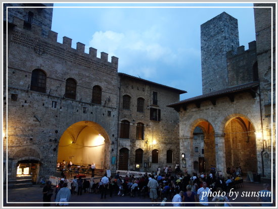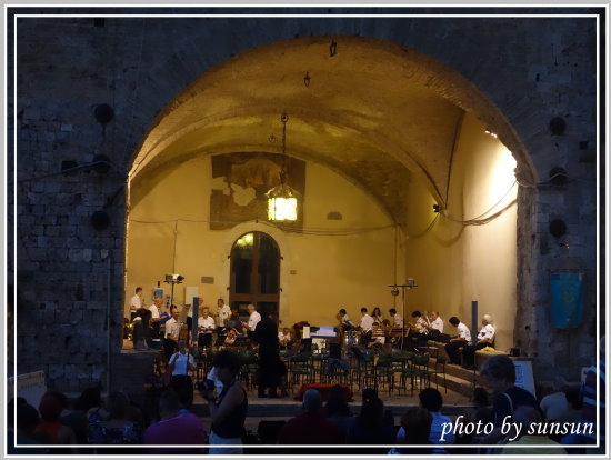 回到主教堂廣場,在領主宮今晚有場音樂會,可惜義大利夜間音樂會都九點或九點多才開始,我們不住城內,只好忍痛放棄。話說今早在西耶納大教堂旁的廣場也架有大型舞台,看來當晚也有場熱鬧的音樂饗宴呢,在義大利,夏季音樂會似乎是每個城鎮必辦的活動。