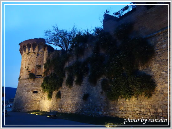 停車場離城門不遠,城牆有圓形角台設計,原本生硬堅冷的石牆隨著歲月的消融而冒出綠意,壯實中帶著些許俏皮。