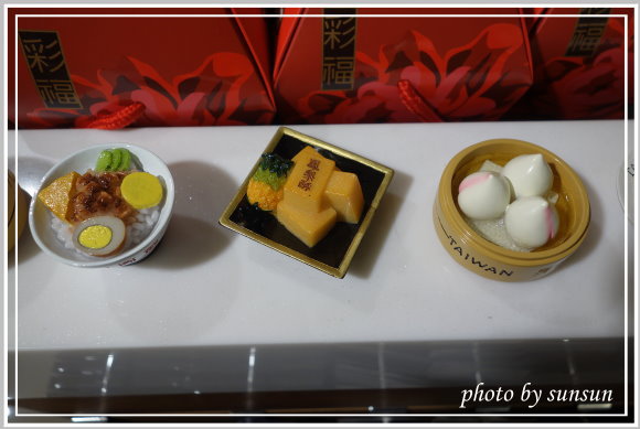 這組台灣美食磁鐵很吸睛,舉凡你想得到的有名小吃都在其中,牛肉麵、肉粽、滷肉飯、鳳梨酥、壽桃、紅龜粿、蚵仔煎、蒸餃、紅蟳米糕、小籠包、臭豆腐、燒賣、蚵仔大腸麵線羹、控肉等,每個150元,令人愛不釋手,真要挑一個還不知道選哪個好,可見我很塞呷,什麼都想吃。