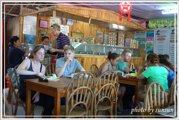 機場前的大馬路往右走,就可看到對面有人在跟你招手,沒錯,他問你是不是要去愛尼島。這是遊客從機場到艾尼島最常使用的交通工具:van,一人600p,路程約6小時。等車的同時他們會推銷艾尼島行程,但在艾尼島買會必較便宜喔。Van若沒坐滿會再到另一個車站載客,我們在那裏等了半小時才開車,司機不停地將貨物往車裡塞,讓我們見識到充分利用每一寸空間的真諦。