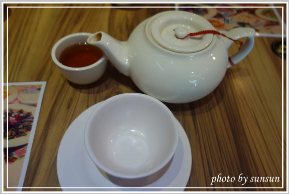 坐定後便送茶水,中式菜色難免偏油,喝茶正可除膩。