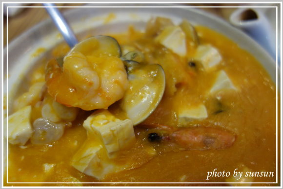 蟹黃海鮮豆腐是當日口味比較清淡的菜色,以蝦子、蛤蠣、豆腐為主角的蟹黃羹,海鮮料給得不算少,很適合淋在白飯上,大口大口扒飯。