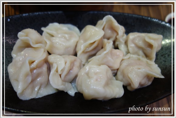 最後再來份十顆個頭不小的韭黃水餃,大家都快飽翻天,一開始的紫米飯應該可以先不用盛。這韭黃水餃鮮肉與韭黃比例適中,比我預期中好吃呢。