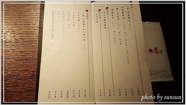 封面是木質的菜單,外側裹上灰與黑織紋布料,散發出深不可測、想讓人一探究竟的感覺。