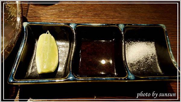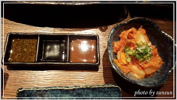 三格碟由左至右分別是檸檬、燒肉醬、玫瑰鹽,隨個人喜好搭配燒肉。