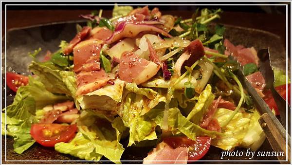 煙燻鴨肉沙拉的蘿蔓青脆飽水,薄片鴨肉軟中帶Q,油醋醬增添風味,第一道就令人滿意。
