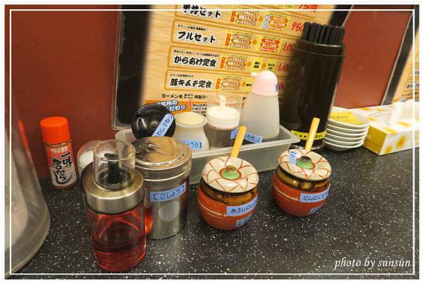 桌上少不了各種調味料,辣椒醬是讓拉麵更美味的好夥伴,加點蒜泥也可解膩呢。