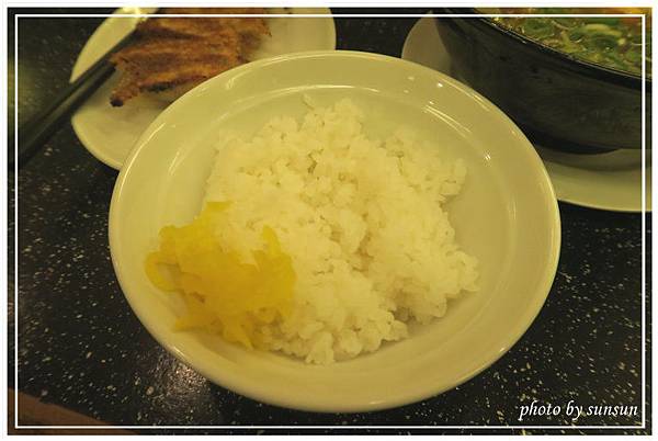 白飯約有一碗的量,黃色的醃蘿蔔滋味甜甜鹹鹹的,還不錯。