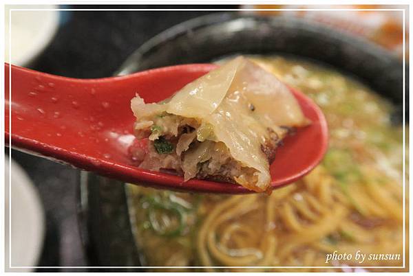 煎餃有六顆,外皮十分酥脆,內餡雖不多可有肉有菜(日本的煎餃好像都是如此),但味道調得還不錯,在台灣也吃過幾間日本來台灣開的知名拉麵店的煎餃,印象都不佳,拉麵研究所的煎餃算是替日本扳回一些顏面。