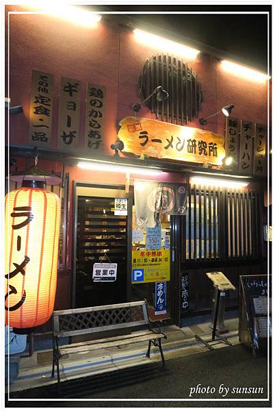 抵達京都已是晚上,記得朋友推薦的拉麵研究所離車站不遠,便依循googlemap前往,走路約十分鐘就可抵達。座落在安靜的街道上,大大的燈籠與門楣上的扛棒沒讓我們錯過它。
