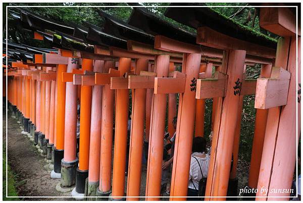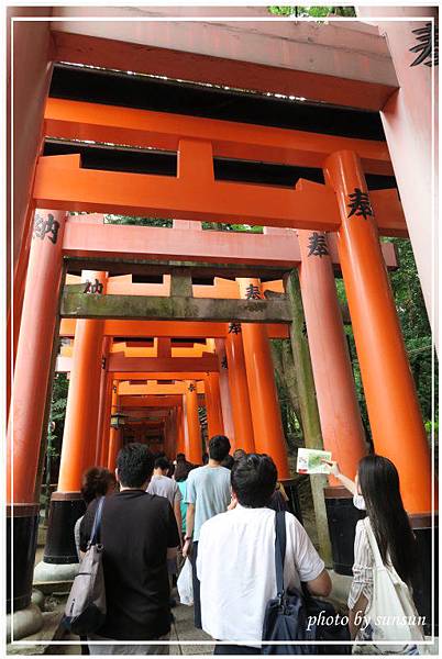往前拍也是人,往後拍還是人的景象無法呈現這千本鳥居懾人的魅力,想順利拍到淨空的照片得早早來囉,或是往山頂爬,或許可達成目標。