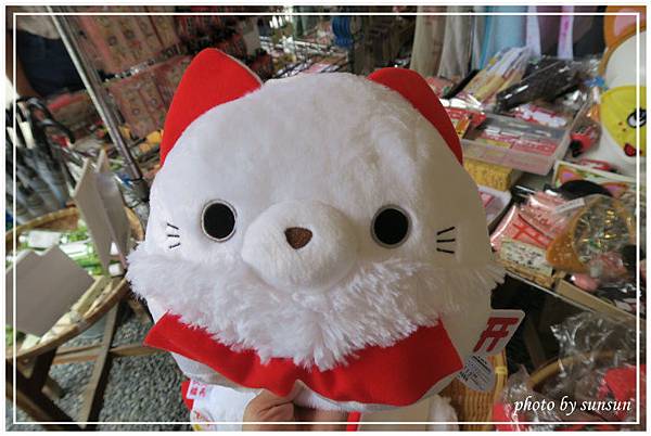 看到這軟QQ的可愛狐狸娃娃,毫無抵抗力地帶它回台灣,不過冷靜後不禁問自己:「年紀都一把了,還買什麼娃娃?」,不過後方還縫著鳥居圖案,也算是日本特有的紀念吧!