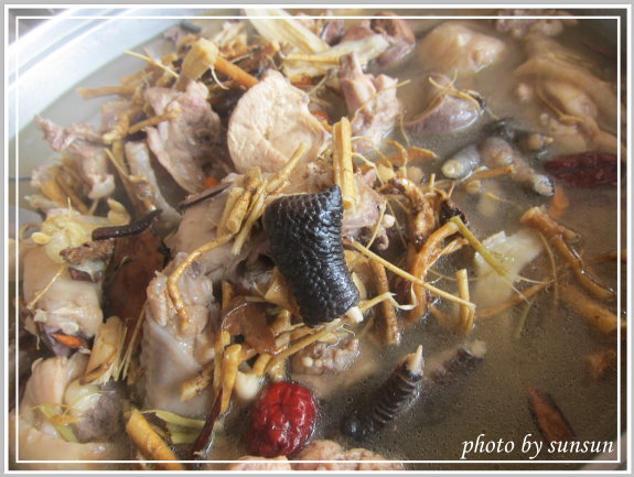 與藥材一起燉煮的九尾雞我是第一次吃到,恰到好處的中藥香使湯頭更顯濃郁,而土雞肉的部分則是我吃過最具韌性的雞肉,得花一點力氣才能將雞肉咬開,相當結實的肉質啊。