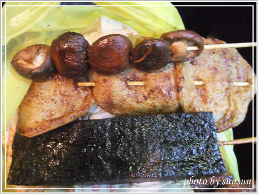 香菇烤的不會過乾,菌菇特殊的香還保留著,烤得恰到好處。黑輪表面微酥,裡面又夠軟,也是好吃。鴨血份量夠大,至於味道我覺得普普。